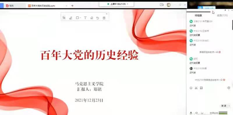 本次宣讲会虽然是在线上举行,但因宣讲内容丰富、史实详实、案例鲜活,还能紧密联系学生实际,活动过程中学生互动评论积极、宣讲效果良好。通过本次宣讲,同学们对党的十九届六中全会精神的理论精髓、核心要义有了更为清晰、更加深刻的认识,纷纷表示受益匪浅。学生党员纷纷表示受益匪浅:作为学生党员我将从自身做起,在学深悟透全会精神上作表率,在宣传全会精神上作表率,在贯彻落实全会精神上作表率,切实把党的百年奋斗精神转化为自身学习、工作的动力。