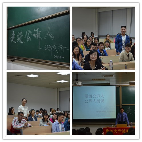 2014年11月19日晚7点,集美大学诚毅学院“法廊漫步-走进公诉人”活动在3#305顺利开展。本次活动由集美区检察院与集美大学诚毅学院法律践行社合办。活动邀请了集美区检察院赵树杰检察官担任嘉宾,与同学们展开了一场别开生面的的交流大会。
