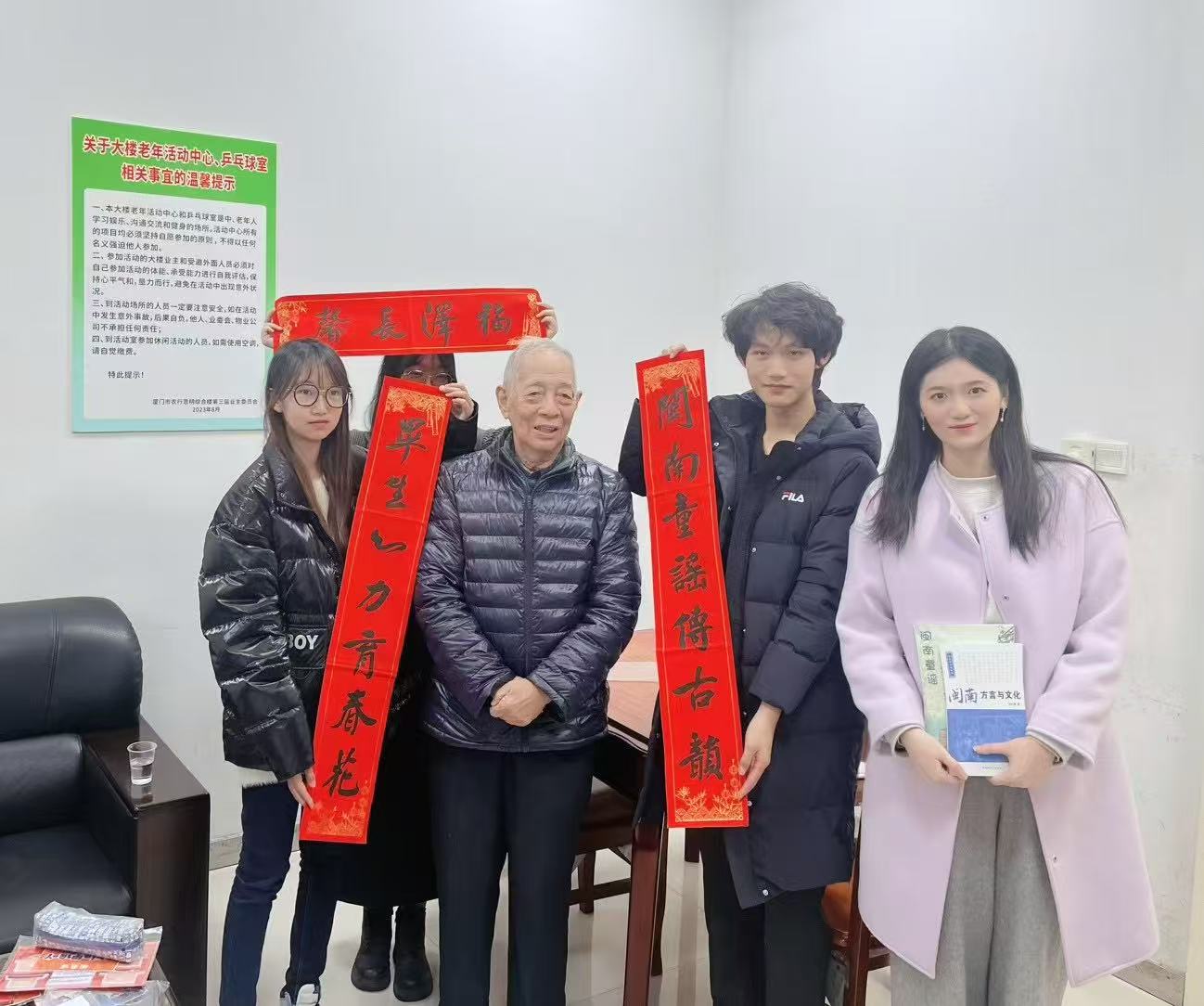 2024年12月,团队成员来到厦门闽南之声广播电台进行实地考察,并作为第十八届海峡两岸“读册歌”广播电视大赛志愿者,全程参与了大赛活动现场的执行工作,积累了闽南童谣传承现状的鲜活素材。与此同时,团队成员对厦门大学中文系退休教授、闽南童谣省级传承人周长楫进行了深度采访。采访过程中,周教授精神矍铄,热情地分析了自己多年来研究闽南童谣的经历与感悟,他详细介绍了闽南童谣的起源、发展脉络以及在不同时期的特点。团队成员认真聆听与记录,与周教授就闽南童谣的传承困境、创新传播方式等问题展开深入探讨。周教授高度评价此次社会调研活动,他表示,年轻一代能积极关注闽南童谣的发展十分难得,传统文化需要更多年轻力量的加入,通过创新形式让闽南童谣焕发生机与活力。