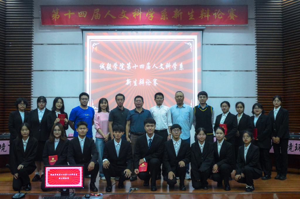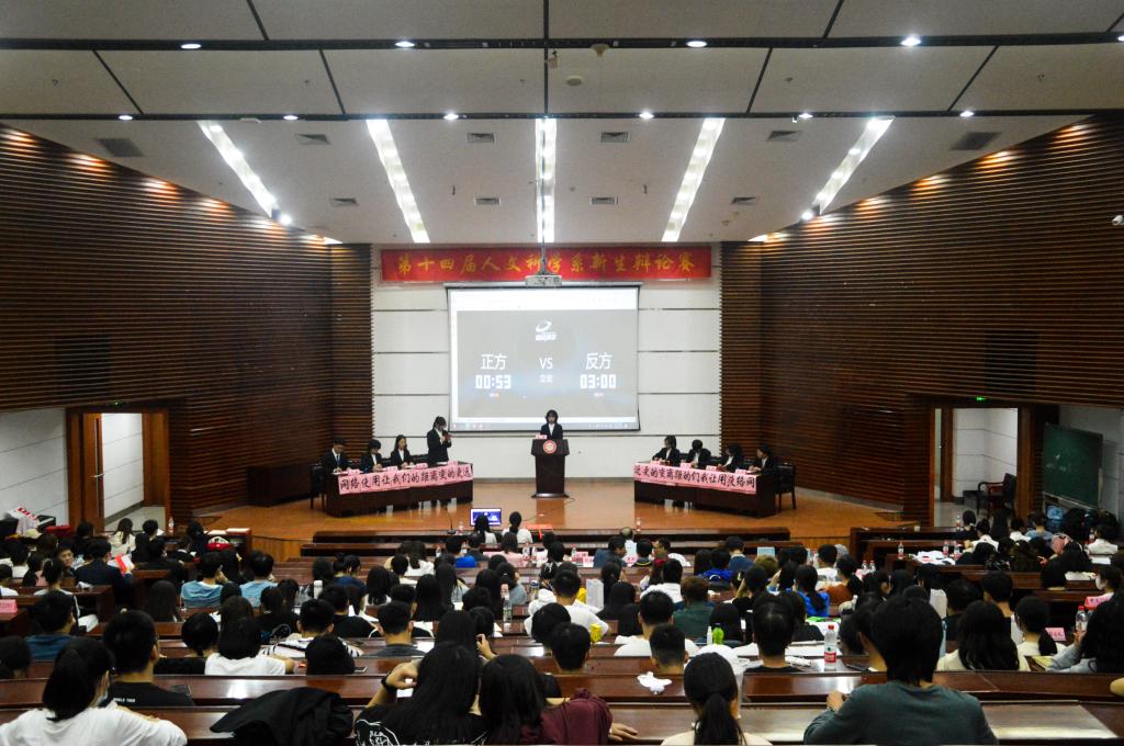 2021年11月4日晚,第十四届人文科学系新生辩论赛决赛在景祺楼104报告厅如期举行,此次辩论赛吸引了同学们的广泛关注。本次比赛邀请了孙健、张帆和陈明祥三位老师担任评委,出席本场活动的还有人文科学系书记许弘明、主任杨锐、办公室主任骆伟堂、法学教研室孙群博士以及新生辅导员。