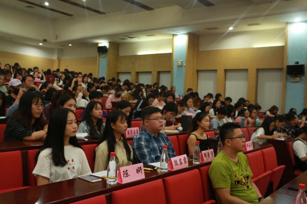 会上,中文专业的陈妍学姐、章嘉芸学姐,英语专业的刘玉凤学姐,法学专业的殷菡璐学姐、郑薇莹学姐和集美大学马克思主义学院硕士研究生邹景宇学长依次上台发言。首先,陈妍学姐结合自身经历,为新生提供了关于大学生活、学习与社团工作的建议,她的发言让新生们意识到大一应树立人生目标、追求人生理想和创造人生价值,令新生同学们受益匪浅;在国学启蒙苑的小视频播放完后,章嘉芸学姐以“年轻无悔,青春值得”提倡创新创业,不负时代与青春,激励着在场的新生们;随后,刘玉凤学姐结合四年的学习经验,传授了英语的“通关秘籍”,而她的志愿经历和“愿你今日所为无愧于心”的感悟也赢得了阵阵掌声;紧接着,郑薇滢学姐分享了她的游泳经验与心得,指导新生们对未来做出规划;邹景宇学长分享了考研方法和心态,寄语新生们“学会规划,专一做事,摆正心态”。在接下来的互动环节中,新生同学们都纷纷向学长学姐们提出自己的疑惑,将活动温馨愉快的氛围推向高潮。活动的最后,辅导员赵晓宇老师上台致辞总结,希翼新生们向优秀的学长学姐学习,不辜负大学四年的美好时光。