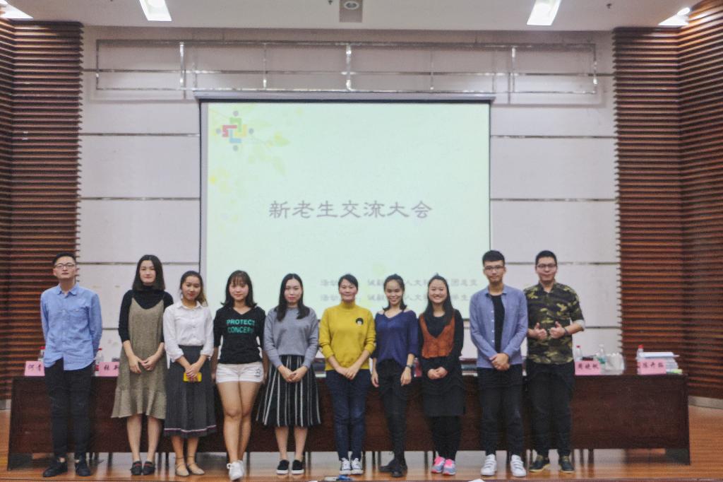 11月28日下午,由诚毅学院人文科学系团总支主办,诚毅学院人文科学系学生会承办的17级新老生交流大会在景祺楼104号报告厅举办。出席本次大会的嘉宾有人文科学系17级新生辅导员陈应娣老师,以及各年级优秀学生代表陈开拓、何青思、黄豆、林晓箐、吴诗琦、郭美晨、周晓帆、余子龙、张新。