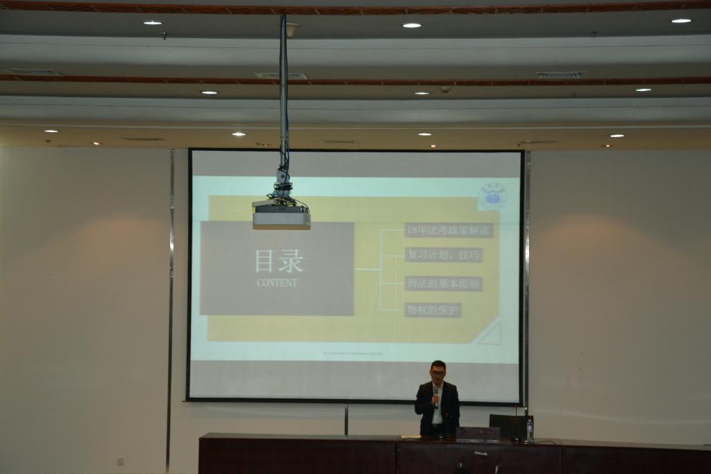 2017年11月13日晚,由法律践行社和华图教育联合举办的“2018年华图法考解析及备考指南”专题讲座在教学楼5号楼101举行。讲座邀请到华图教育授课讲师林英和马春辉就“如何复习国家法律职业资格考试”等同学们关心的问题进行了详细的讲解。