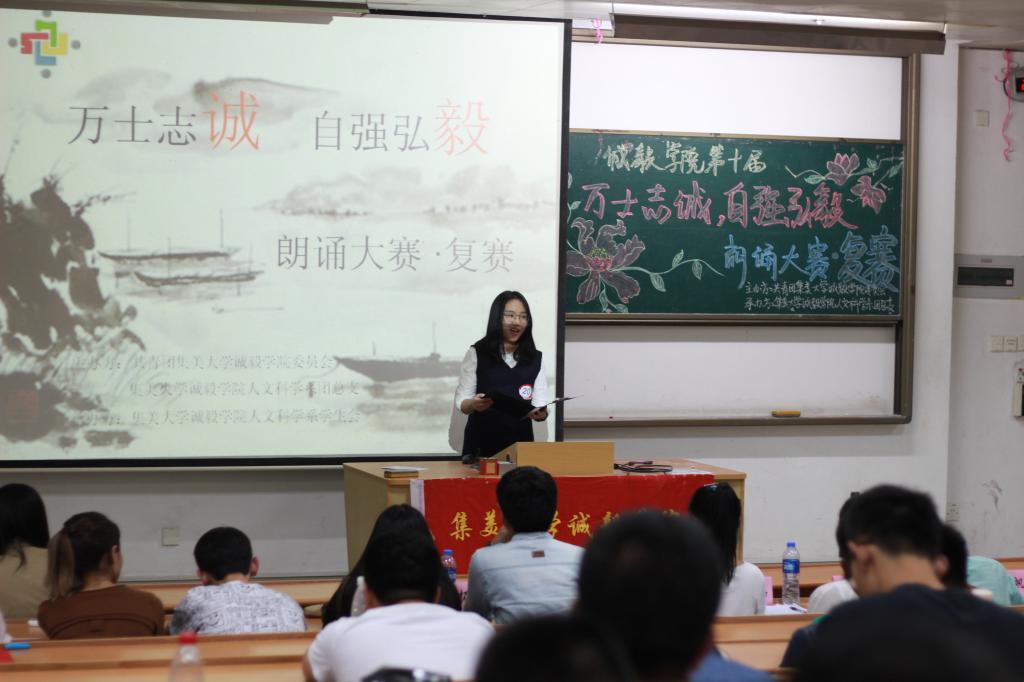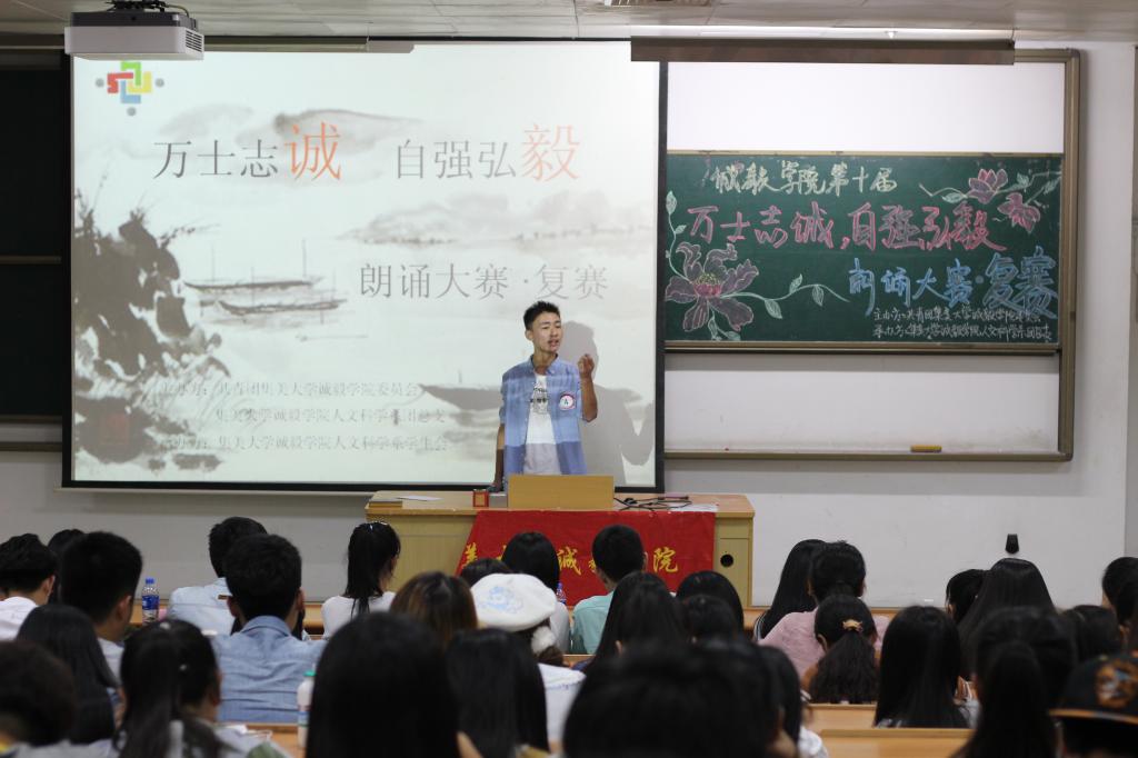 11月13日晚,诚毅学院第十届“万士志诚,自强弘毅”朗诵大赛复赛在教学楼四号楼举行。本次比赛由人文科学系团总支、学生会主办,出席本次复赛的评委有汪鹏、吴蕊、周晓帆、于怡、陈开拓。