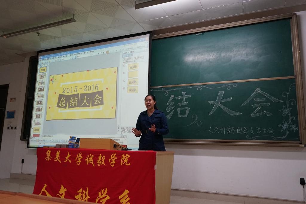 2016年3月9日晚上7时30分,集美大学诚毅学院第十一届人文科学系团总支、学生会总结大会在教学楼隆重召开。人文科学系团总支书记丁小昀老师以及全体学生会成员一同参加此次总结大会。