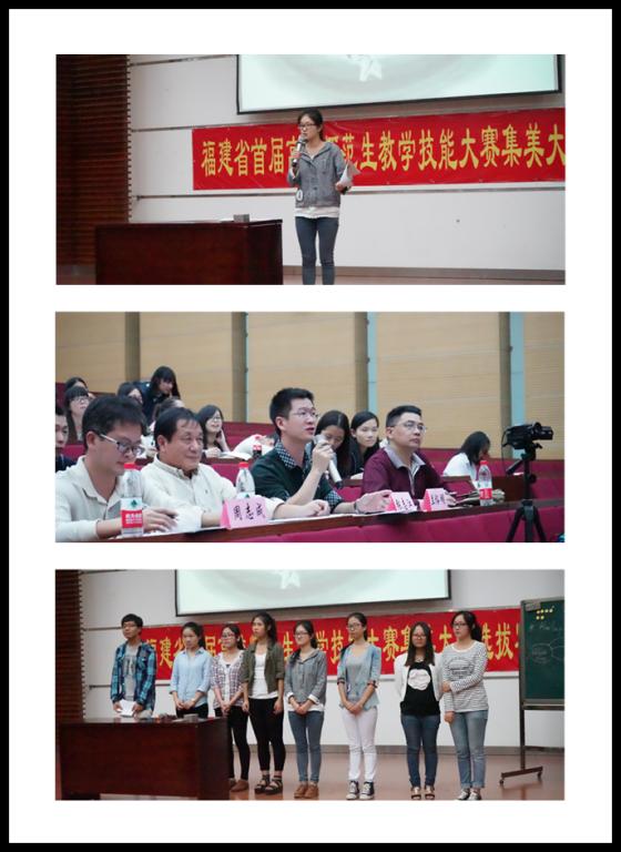 2014年11月4日晚7时,福建省首届高校师范生教学技能大赛诚毅学院英语组选拔赛于诚毅学院景祺楼104隆重举行。集美大学外国语学院黄汉华老师、张志江老师、周志成老师担任本次大赛的评委。集美大学诚毅学院人文科学系英语负责人兰裕明老师、团总支书记丁小昀老师以及人文科学系辅导员何艳老师出席了本次比赛。