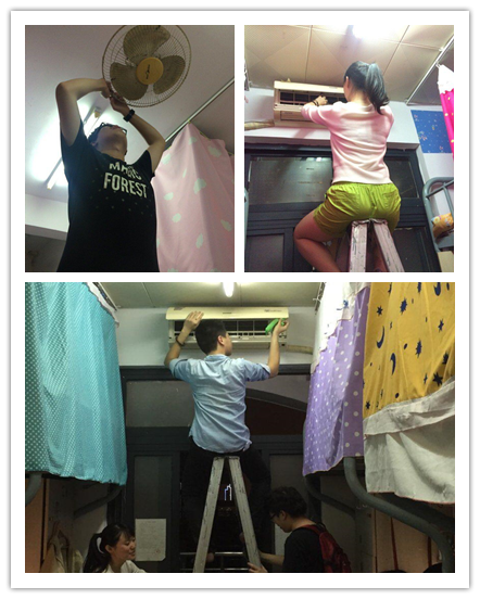 为了在盛夏来临之际,能够让我院人文科学系学生用上干净的空调、电扇,人文科学系自律会决定到同学们的宿舍清洗这些电器。活动在2015年4月20日晚上七点左右开始,各部门成员热情高涨,积极投入到工作中去。无论是负责爬上梯子拆卸电器的工作,还是负责清洗空调过滤网的工作,每个成员都很认真努力,争取让每间宿舍满意,感受到我们满满的关怀之情。活动一直持续到晚上十点,每个成员都早已累得精疲力尽,但是他们都乐在其中。因为不管怎样的辛苦,临走时得到同学们一声真诚的感谢,在这一瞬间所以辛劳都能被化解,就像微风吹散了所有疲惫。