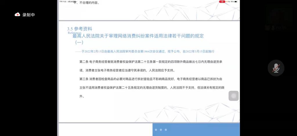 为了丰富疫情防控期间同学们的课余生活,更好的普及消费者权益保护知识,我院法律践行社于3月28日晚举办了“集美区消费者权益保护意识采访见闻分享会”,本次活动通过腾讯会议在线上进行,适应当前疫情防控需要。