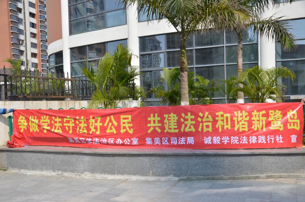 3月28日下午,我院法律践行社普法志愿者会同集美区依法治区办公室、集美区司法局走进集美区滨水小区开展“送法进社区”普法系列活动。