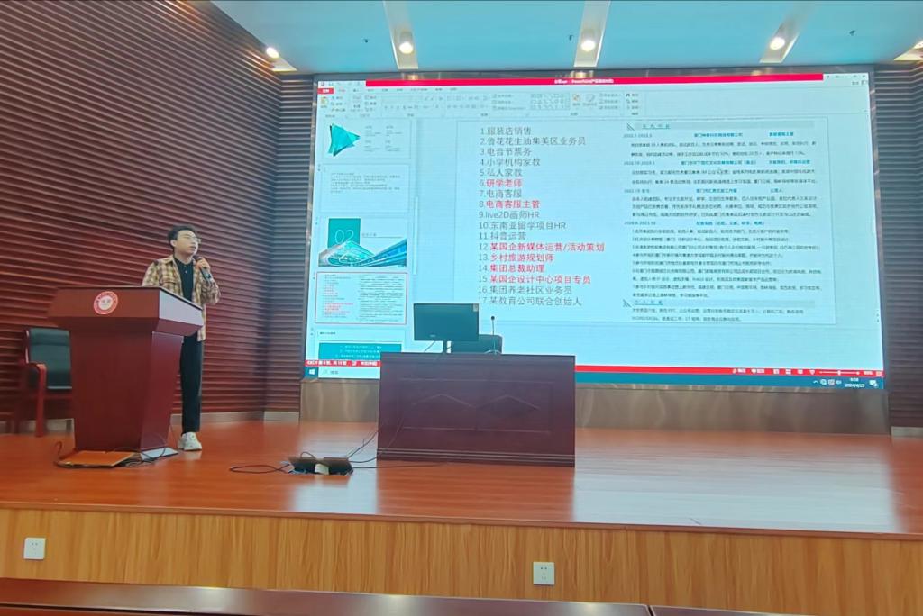 邀企入校,互通信息;探索职场,助力梦想。本次大会还安排了“小型对口招聘”环节,邀请状元兔公考教育科技有限公司、铁马律师事务所等多家企业到现场进行宣讲,为毕业班学子带来了多个就业岗位,助力他们寻求更多的就业机会,找到心仪的工作岗位,促进高质量就业。与会同学积极沟通交流,凝聚力量,互通就业信息,分享就业经验。