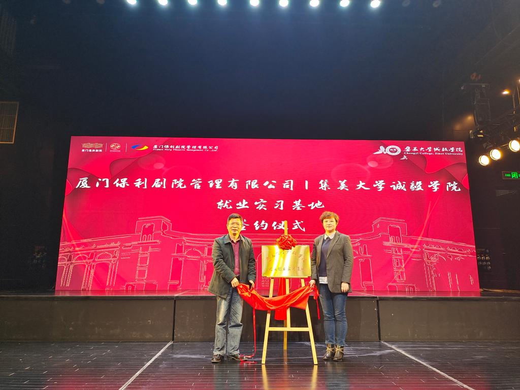 人文科学系一行先后参观了嘉庚剧院大剧场、闽南戏曲艺术中心、黑匣子剧场,并针对合作事宜展开深入会谈。杨锐与厦门保利剧院管理有限公司总经理梁珊签署共建协议,许弘明与梁珊共同为实习基地揭牌。艺术教育需要深度地借助和汲取艺术舞台及艺术田野的营养,而嘉庚剧院具备实现结出艺术硕果的条件。许弘明感谢嘉庚剧院能为青年学生提供实践机会,助力他们将理论和实践相结合,为青年学子顺利步入社会打下良好基础。杨锐表示,此次合作不仅有助于双方共同培养专业的文化创意管理人才,也有利于企业方选聘、吸引更多的优秀毕业生在文化产业发展。