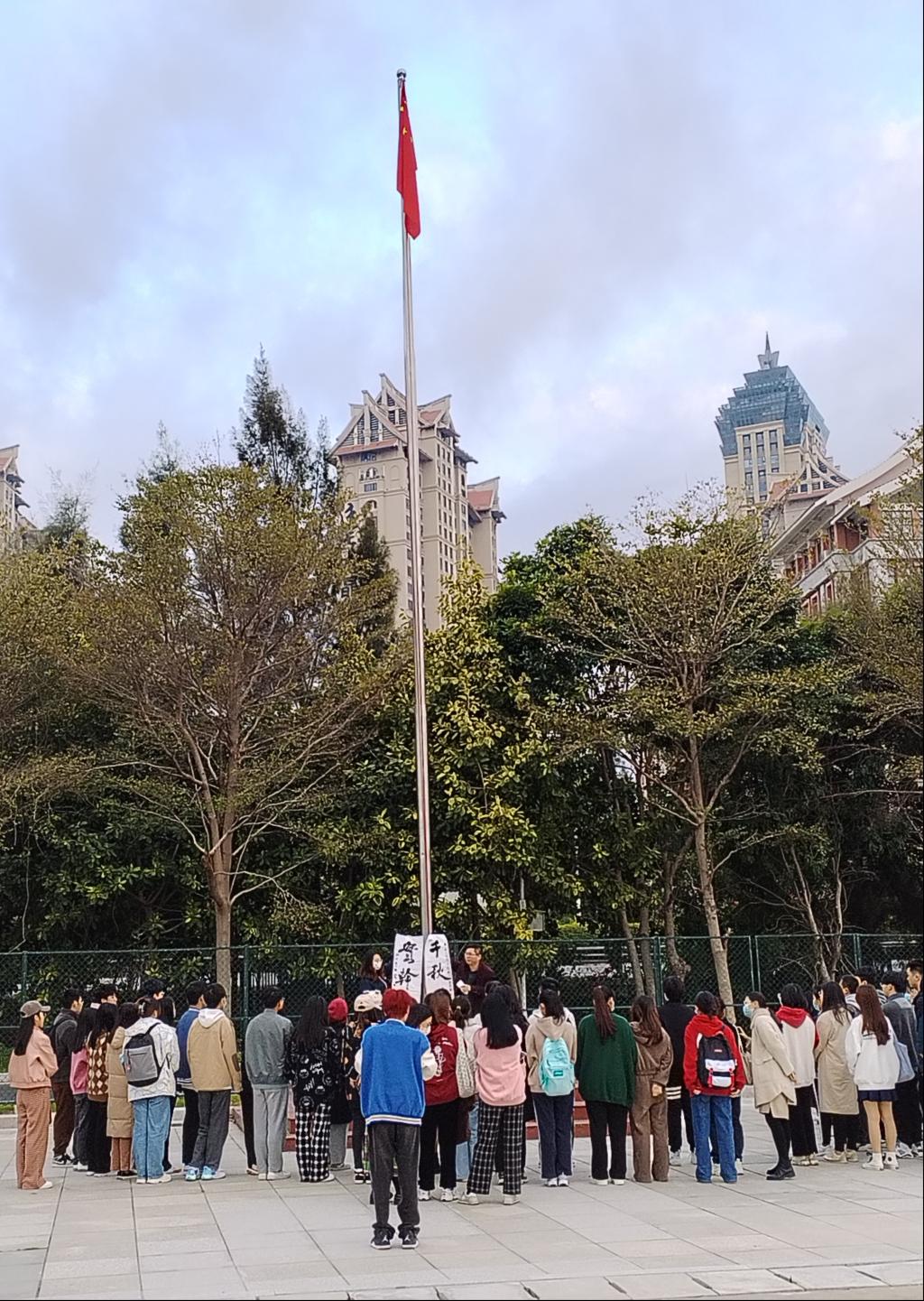 为进一步深入学习贯彻党的二十大精神,2月28日,人文科学系组织开展新学期升国旗活动,系党委书记许弘明,党委组织员、各年级辅导员和学生到场参加,在国旗下同上一堂大思政课。