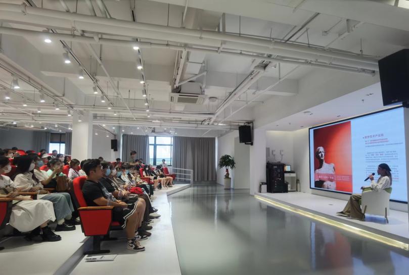 园区首席执行官蓝坤木先生在艺术园多功能大厅为师生开设了文化产业主题分享会,他详细介绍了园区的整体规划和产业布局,并生动展示了数字艺术的全产业链。维纳数字艺术园区是以艺术智造为核心优势的产业园区,规划了校企艺术青创中心、艺术智造工场、元晟数字艺术馆、艺术文创空间、艺术直播空间与中央艺术大街等等功能业态。通过此次分享,同学们对艺术创作、艺术发布、艺术智造、艺术衍生品IP运营、艺术AI直播、艺术休闲文旅等产业链有了更为深刻的了解。