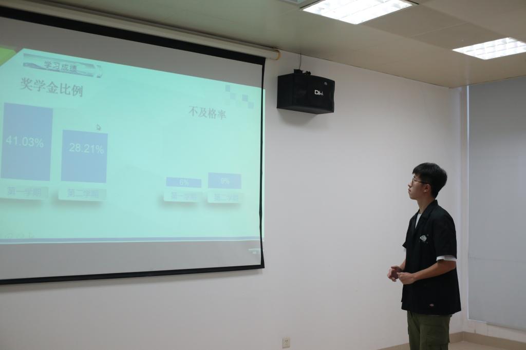 会议开始,参加评选的各班代表上台以PPT的形式,围绕班级概况、学风建设组织机制、学风建设特色活动,以及学生参与学习竞赛、科技竞赛、专业实践等方面,全面细致地展现了班级学风建设方法和取得的优异成绩。各班级开展的学习互助小组、四六级交流会、志愿活动等形式多样的创建活动让在场师生们印象深刻。最终,英语1891、英语1991、英语1993、法学1992、中文1994、英语2091、法学2091、中文2092八个班级获得“优良学风班”称号,推荐英语1891、英语1993两个班级参评院“优良学风标兵班”。