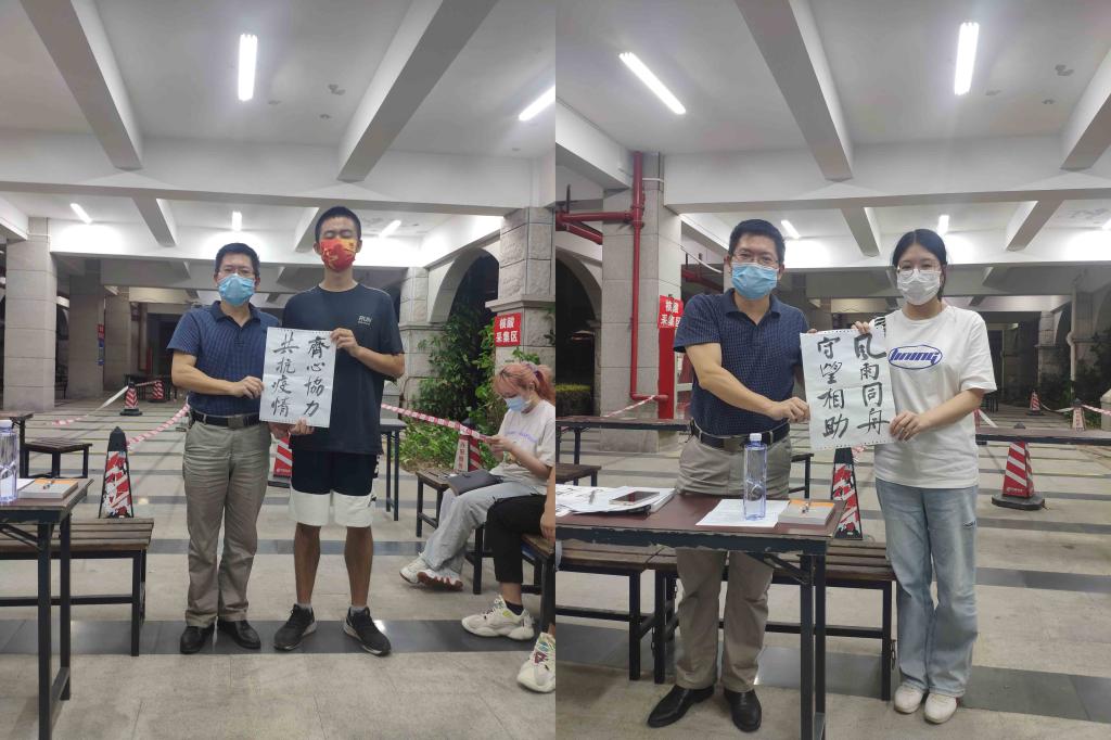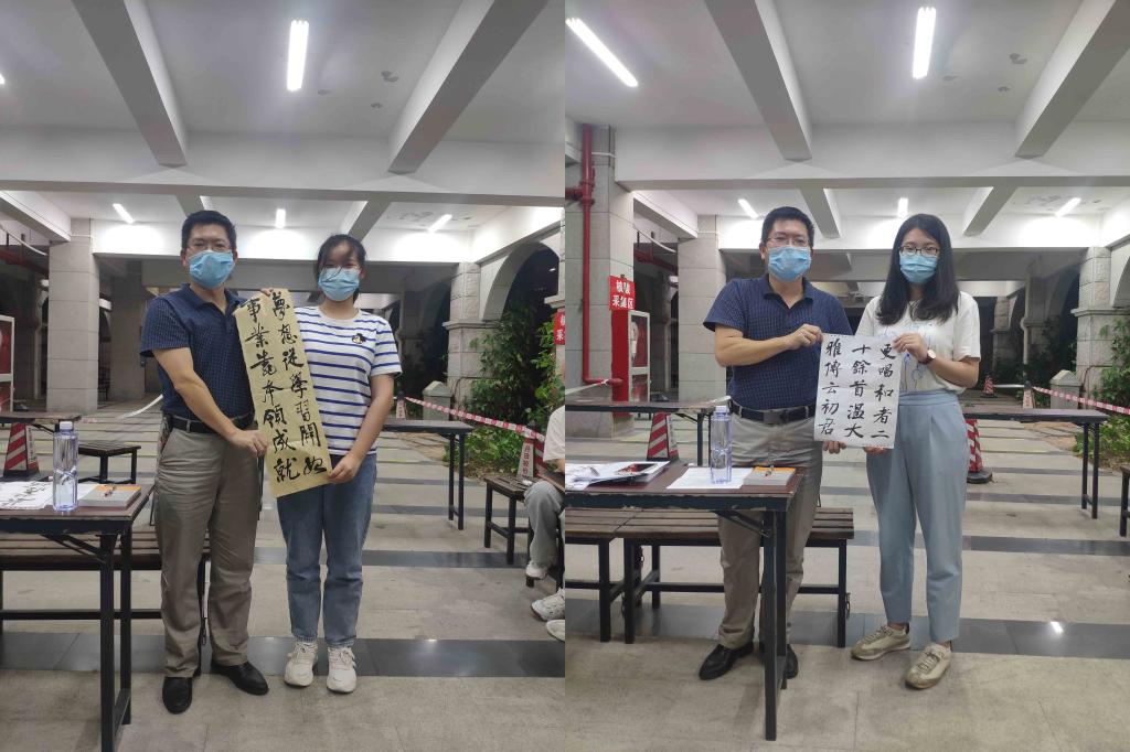 最后,许弘明就系里正在开展的“诚迎国庆,毅园寻宝”活动进行了指导,他说:疫情封闭了我们的校园,却不能阻挡我们对美的追求的向往。只要大家深入校园、细心感悟,处处都是亮丽的风景!他还跟大家分享并赠送了自己的书法习作,他借用习近平总书记的话:“梦想从学习开始,事业靠本领成就”,希望同学们潜心学习,敢于追梦,张扬个性、厚积薄发,不断增强本领,为学院建设发展和国家民族复兴添砖加瓦。借用书法“齐心协力,共抗疫情”、“风雨同舟,守望相助”,呼吁同学们“众志成城抗疫情,万众一心勇担当”。虽疫情渐好,但“行百里者半九十”,愿广大师生齐心协力,共克时艰,共迎曙光!