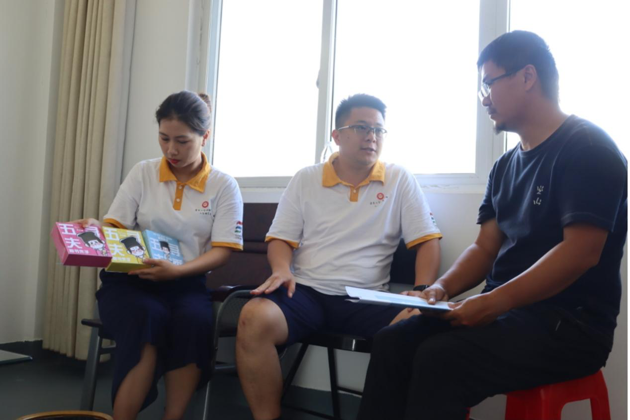 在了解工作站与农业科技公司合作发展的意向后,队员们向工作站负责人展示了实践队精心设计的有关五夫镇朱子文化IP的文创产品。根据实物样本,袁松松副总经理赞扬了队员们年轻化的文创产品设计,认可了青年大学生实践下乡的实践成果,提出了与实践队在未来产品包装设计方面的合作意向。