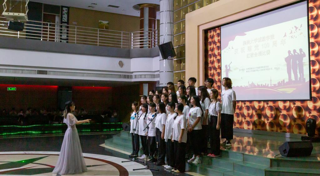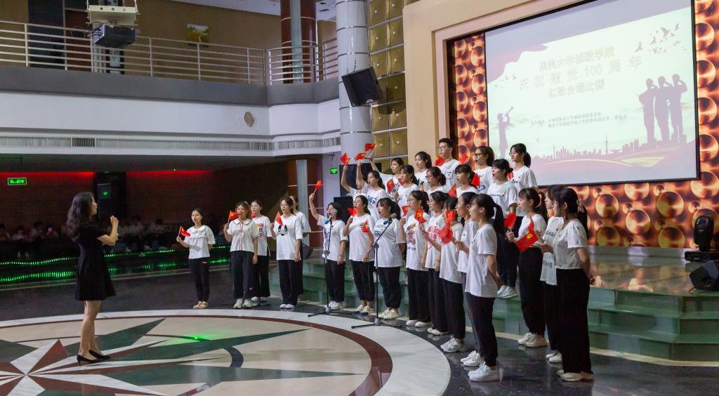 一段时间来,各班级积极参与。他们在辅导员老师和相关负责人的指导下,利用课余时间精心准备、积极练唱,展现自我风采。在激烈的角逐中,共有八个班级进入决赛。决赛中,法学1993班的同学们热情洋溢、精神饱满、声音洪亮,成功摘得桂冠;中文2091班则更注重合唱形式的创新,利用五星红旗等道具加强了爱国爱党的氛围渲染,获得本场比赛第二名。参赛同学们高亢雄浑的旋律、铿锵有力的节奏感和饱满激昂的精神风貌,唱出了人文学子爱党爱国的心声,也让听众们感受到中国共产党开天辟地、砥砺前行的奋斗精神。最后全场师生齐声高唱《没有共产党就没有新中国》,将活动推向高潮。