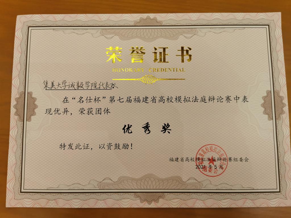5月29日,由人文科学系法学专业2019级徐梦琳、高思颖、苏静、吴博炜四位同学组成的我院代表队,参加由福建省教育厅主办,福建师范大学、福建省法学会承办的“第七届福建省高校模拟法庭辩论赛”,在参赛的18所高校中位列辩方组第三名,被组委会授予团体优秀奖。这个成绩也是本届厦门参赛高校取得的最好成绩。