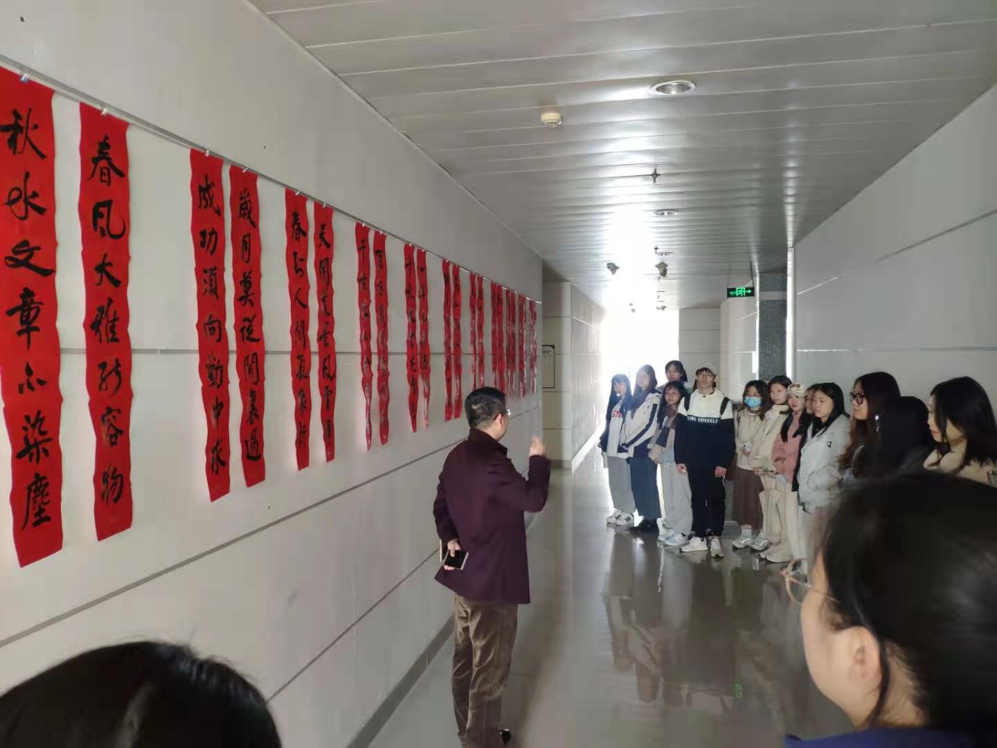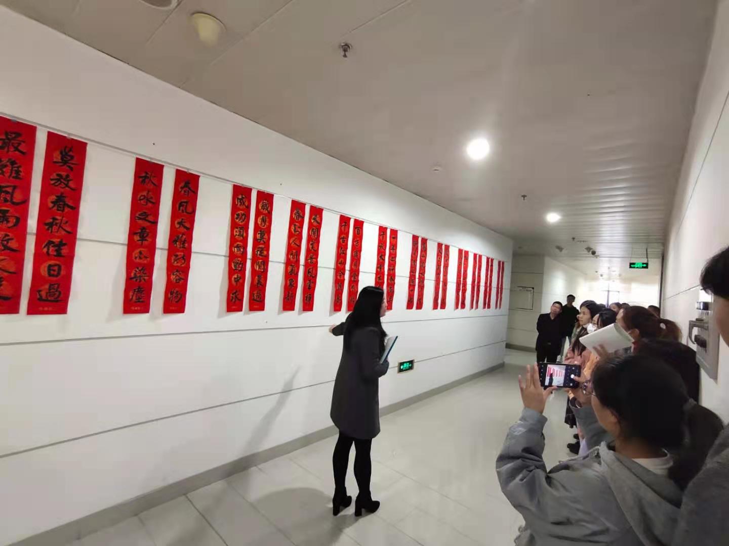 为提升人文学子的中华文化素养,涵养全系师生的中华文化自信,系总支书记许弘明老师利用元旦假期精选书写了多副励志对联,悬挂于系办公室门口走廊,供师生赏析,展后赠送给师生代表。以此为契机,各支部积极开展了以“赏析励志春联,涵养中华文化自信”为主题的党日活动。参加本次活动的有全系辅导员、中文教研室老师、主要学生干部及总支全体党员。本次党日活动分为三个环节:一是由中文教研室陆露老师解析春联传统文化精髓;二是由许弘明书记带领大家赏析精选励志春联,并解析书法写作的技巧;三是许书记带领大家品读励志春联的深刻含义。通过本次活动,学生们、老师们不但了解对联所承载的中华民族传统文化,更感受到励志对联所饱含的深刻含义。“九州跨入新时代,万众欢呼大作为。”、“岁月莫从闲里过,成功须向勤中求。”、“脚下行程千里远,腹中贮书万卷多。”励志对联字字珠玑,犹如寒冬里涌动的一股暖流,温暖着在场的所有人。