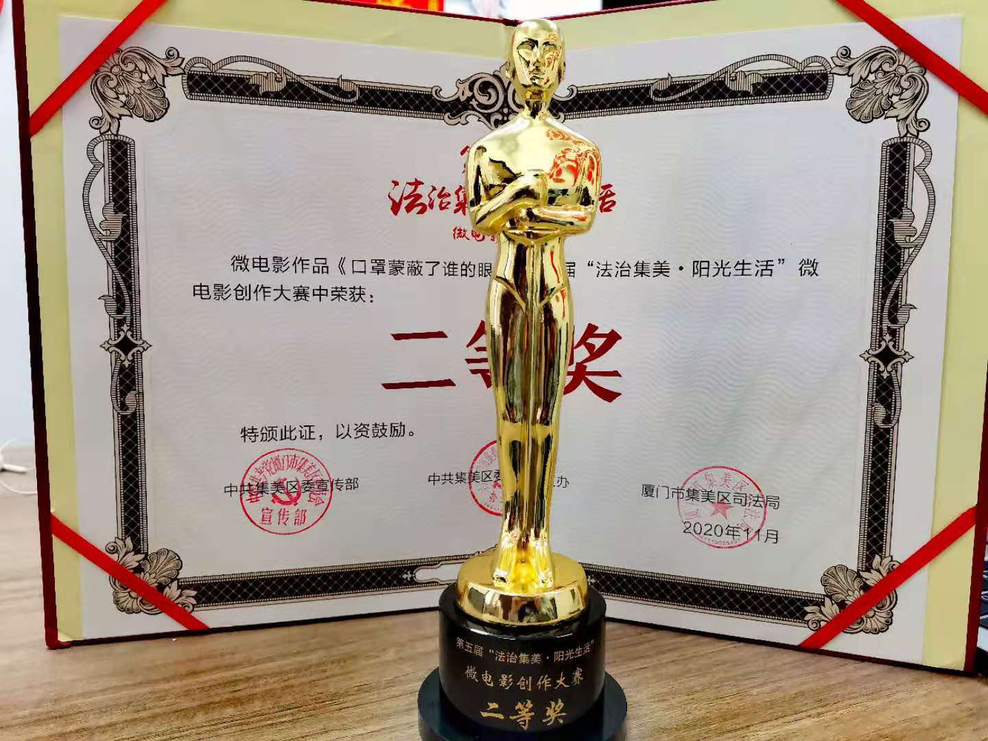 由集美大学诚毅学院法律践行社创作的法治宣传微电影《口罩蒙蔽了谁的眼》在第五届“法治集美· 阳光生活”微电影创作大赛中荣获二等奖。颁奖仪式上,集美大学诚毅学院法律践行社第十六届社长徐梦琳代表社团进行领奖。本次获奖影片取题时下热点法律问题,受到广泛好评。