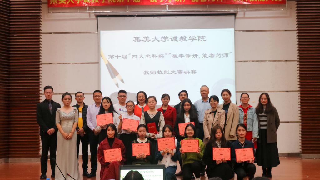 12月9日晚,由诚毅学院教务部与诚毅学院人文科学系主办,人文科学系团总支、学生会承办的诚毅学院第十届四大名补“桃李争妍,仁者为师”教师技能大赛决赛在景祺楼104报告厅举行。出席本次大赛的嘉宾有人文科学系党总支书记涂静萍老师,人文科学系办公室主任靖耀老师,人文科学系中文教研室孙健老师,人文科学系团总支书记骆伟堂老师,人文科学系全体辅导员老师与各院系代表们。担任此次大赛的评委分别是英语教研室主任兰裕明副教授,英语教研室邓欢老师,中文教研室徐晓元老师,中文教研室张少美老师,以及四大名补教育科技集团副总裁赵丽娜。