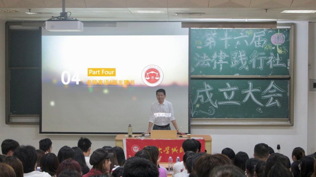 11月20日晚,第十六届法律践行社成立大会于教学楼4号楼201室举行。参加本次成立大会的有人文科学系法学教研室主任陈明祥老师,人文科学系办公室主任暨法律践行社指导老师靖耀老师,人文科学系辅导员王云老师,同时还有第十五届法律践行社代表,人文科学系辩论队、人文科学系学生会、云跃剧社、模拟联合国协会、墨缘书法协会负责人以及第十六届法律践行社全体成员。