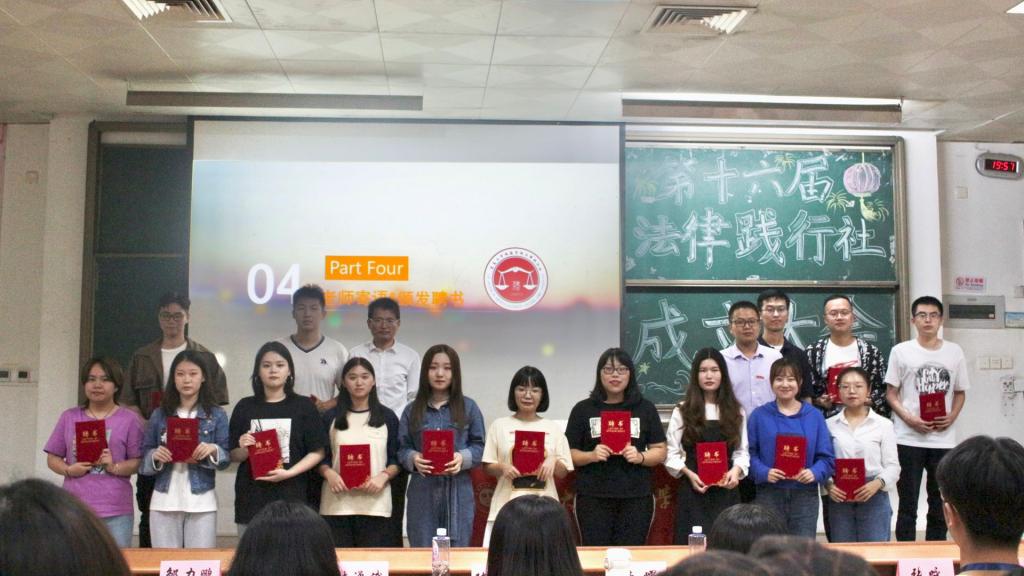 至此,第十六届法律践行社成立大会圆满落幕。希望法律践行社的新成员们,可以承载前辈们的祝福,在未来的发展中表现的更加出色,用法律的武器书写正义篇章,让未来社会充满公平公正!