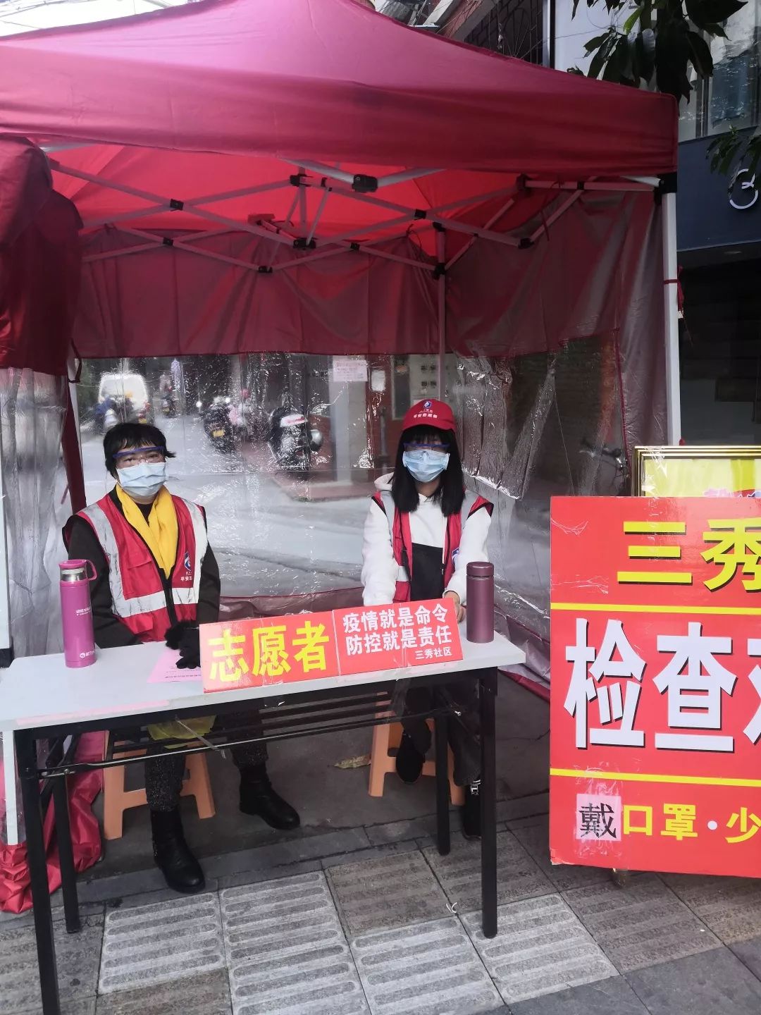 今年大二的余周莹同学,寒假通过三秀社区居委报名参加防控疫情的志愿者活动。