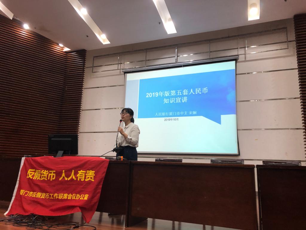 10月16日下午,人文科学系党总支与中国人民银行厦门市支行联合开展“普及金融知识,守住钱袋子”主题党日活动。活动在诚毅报告厅以讲座形式开展,2019级人文科学系全体新生及新生辅导员参加。