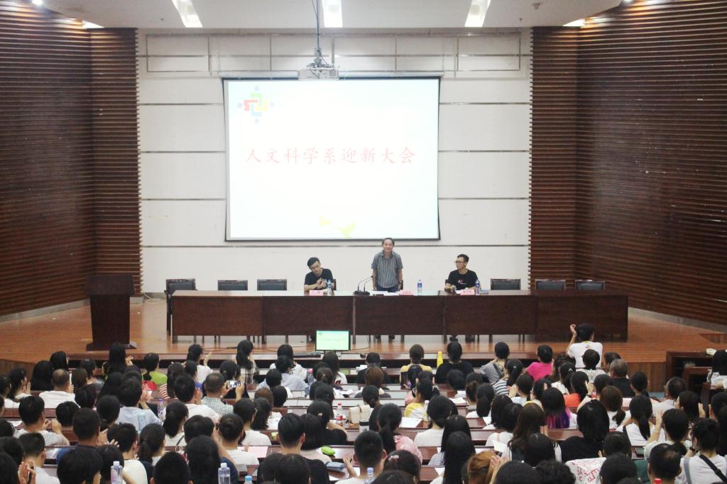 8月31日晚,人文科学系2019级新生大会于诚毅学院景祺楼104报告厅举行。出席本次大会的有人文科学系党总书记涂静萍老师、人文科学系新生辅导员王鹏老师、董培辉老师及2019级全体新生和部分学生家长。