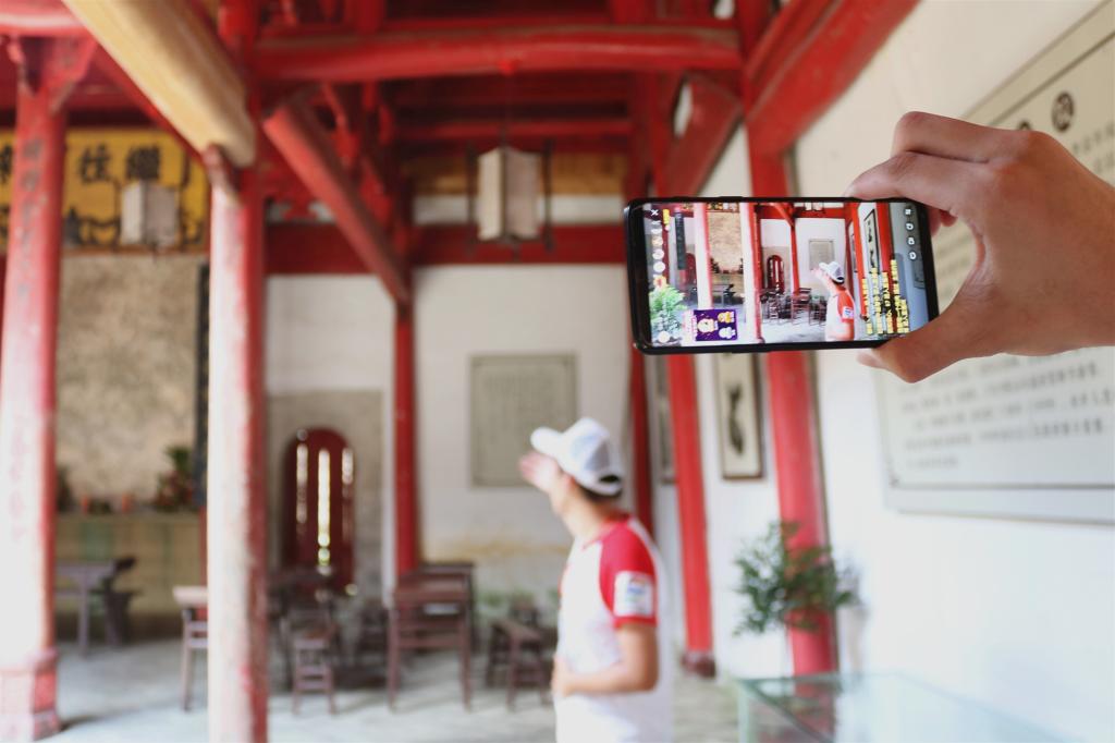 自2016年以来,派遣成员驻点进行志愿讲解已成为“寻熹人文”实践队的传统。此次四寻五夫,实践队员们驻点兴贤书院、紫阳楼两地共接待游客千余次,很好地缓解了当地接待大量游客的压力。同时,“寻熹人文”实践队利用微博平台浏览量大的特点,进行了两场讲解直播,取得良好反响,收获了更多的关注度。队员们在去年讲解微课堂的基础上加以创新,目前已在兴贤书院、紫阳楼、朱子社仓、民俗文化馆等地完成了六期微课堂的录制,以连载的方式在腾讯视频与“寻熹人文”公众号平台中同步推送。今年,“寻熹人文”实践队首创古镇“快闪”活动,全体实践队员都参与了视频的录制。“快闪”活动以古典歌曲《礼仪之邦》、国学启蒙读本《千字文》、经典诗词《苔》为主要内容,融情景剧、手语操、唱诗歌、汉服舞等形式为一体,很好地宣传了五夫当地的人文风光。