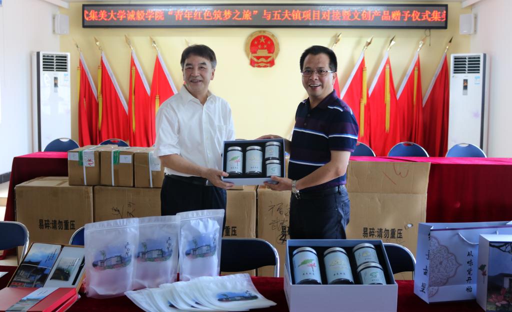 7月20日上午,集美大学诚毅学院“青年红色筑梦之旅”项目对接暨文创产品赠予仪式在武夷山市五夫镇镇政府会议室举行。出席仪式的嘉宾有:五夫镇党委副书记兼镇长李小勇、镇宣传委员王钦明、镇团委书记蒋凯祥、五里坋合作社社长占建良,以及前来实践队慰问的诚毅学院领导们。镇文化服务中心站长李直玲、“国学启蒙苑”创新创业团队指导老师陆露及创始团队成员、“寻熹人文”实践队带队老师赵晓宇及全体实践队员共同出席仪式。