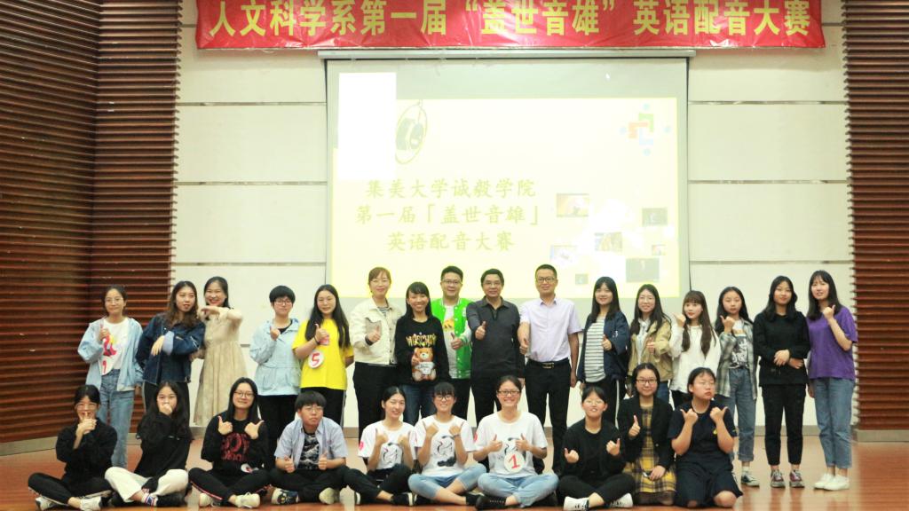 5月6日晚,由诚毅学院人文科学系团总支、学生会主办的第一届“盖世音雄”英语配音大赛决赛在景祺楼104报告厅举行。担任比赛的评委有英语教研室李旻老师、王君越老师、陈小云老师。莅临本次大赛的嘉宾有人文科学系党总支书记涂静萍老师、人文科学系办公室主任靖耀老师、英语教研室主任兰裕明老师、中文教研室主任王锡明老师、人文科学系团总支书记兼学生会指导老师骆伟堂、人文科学系辅导员们以及各院系主席团代表。