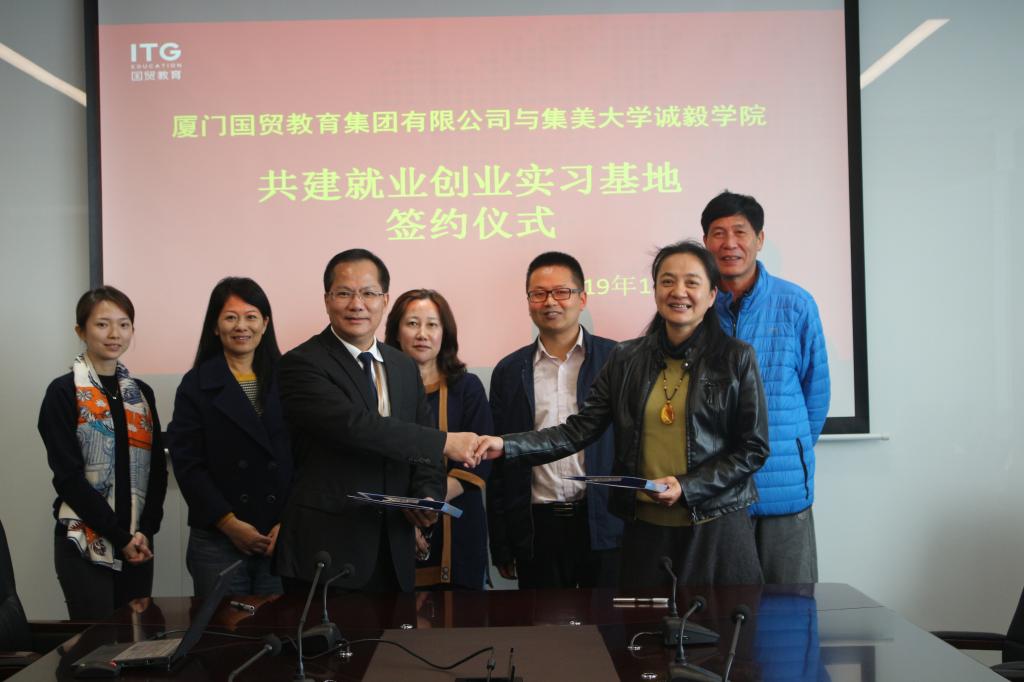 2019年1月4日下午,人文科学系与厦门国贸教育集团共建学生就业实习基地签约、授牌仪式在厦门国贸教育集团举行。人文科学系党总支书记涂静萍与厦门国贸教育集团有限公司总经理杜举胜代表双方签订共建协议书并举行了授牌仪式。参加会议的有人文科学系中文教研室主任王锡明、系办主任、就业联系人等教师及国贸教育集团副总经理张珍、事业发展部、学前教育部等相关人员。