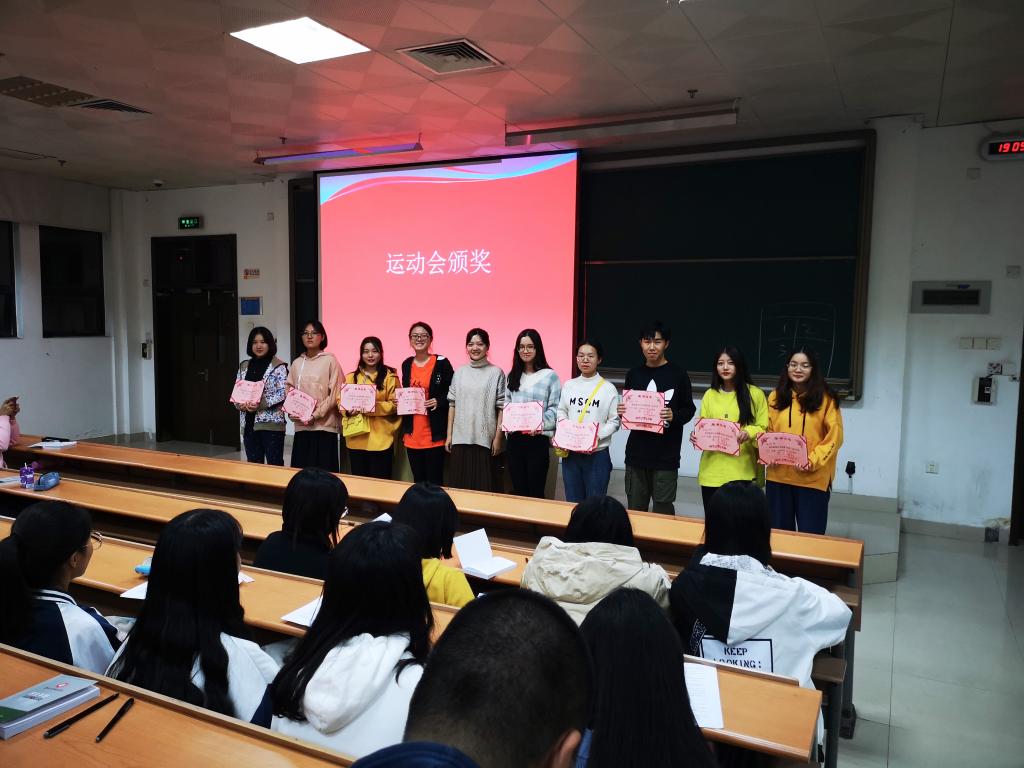 本次大会首先由杨思司老师为本专业在运动会上表现优越的运动员们颁奖,多位同学获得奖项并上台接受颁奖。然后,杨思司老师再度明确了开学以来组织同学们学习的学生手册上的内容,并要求同学们对于手册内的内容再加落实。紧接着,来自中文1794的李澈同学和中文1792曾云菲同学进行了红色青春宣讲。在讲话中,两位同学为在场的18级同学们绘声绘色地描述了在进行红色实践活动时做的采访活动和遇到的趣事。李澈同学还给大家介绍了习近平新时代中国特色社会主义思想,用简洁易懂的语言为同学们生动详细地阐述了思想内核。同学们在本次宣讲中得到了全新的学习体验,受益匪浅。