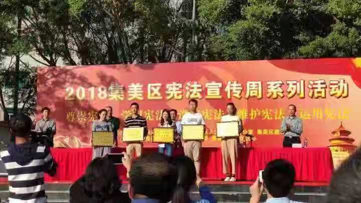 12月3日下午,为深入贯彻落实习近平总书记全面依法治国新理念新思想新战略,中共集美区委宣传部、集美区人大常委会办公室、集美区教育局、集美区司法局、集美区审计局和集美区依法治区办于霞梧广场开展了以“尊崇宪法、学习宪法、遵守宪法、维护宪法、运用宪法”为主题的2018年集美区“宪法宣传周”活动,区委常委、宣传部长赖朝晖,人大常委会副主任邱晓晖,区政协副主席陈小强等领导莅临启动仪式现场。