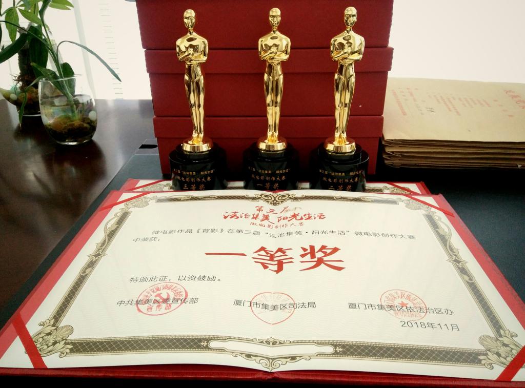 启动仪式第一项议程为宣读集美区第三届法治微电影征集活动获奖名单、第三届“独角兽杯”法治格绘画大赛表彰决定并举行颁奖意仪式。诚毅学院法律践行社的三部微电影作品:《背影》荣获一等奖、《货价》荣获二等奖、《翻转姐妹》荣获三等奖。在电影中我们体会不一样的人生,收获更深刻的法治知识。