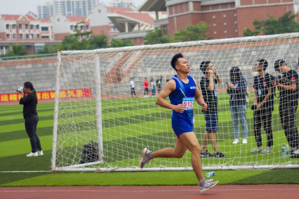 接下来的男子一百米预决赛,英语专业的李逸鸣同学取得了第一名的好成绩,在谈到赛后的感想时,他说,“比赛前很紧张,对手们实力很强劲,能够在众多优秀运动员中脱颖而出,很荣幸也开心。”