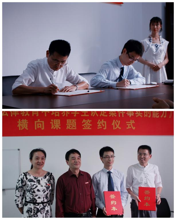 第二部分由涂静萍书记主持《诊所法律教育中培养学生认定案件事实的能力》横向课题签约仪式。首先由张集森校友和陈明祥老师签订《诊所法律教育中培养学生认定案件事实的能力》横向课题合作协议书。此横向课题由张集森校友赞助项目研究经费10万元。接着由张集森校友致辞,他感谢学院给他提供这样一个服务同学、回馈母校的平台和机会。并告诫学弟学妹学生阶段一定要多实践,将书本上的知识转换到实践中,实践的形式也可以很多元,法律诊所就是一个很好的平台,希望大家用好这一平台,学好专业技能。最后是诚毅学院副院长朱宝荣教授致辞,他将张集森校友的行为比作
