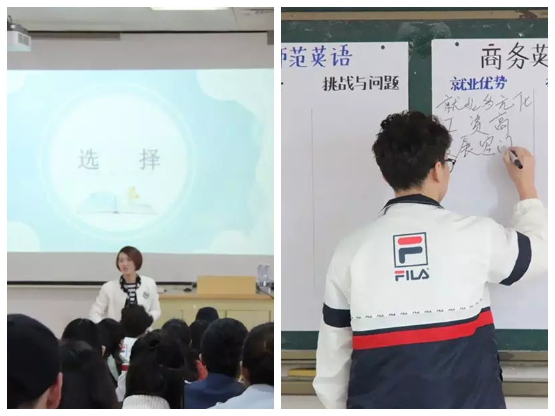 “那时候,我没有选择的权利,所以我无比羡慕同学们拥有选择的机会!”这是魔奇英语南方区总经理汪艳霞回忆初入职场时的感慨。人生是一趟单程旅行,正因青春不可逆,选择才重要。此次宣讲会,并非“偏心”或“袒护”师范英语方向,而是希望通过对师范英语和商务英语二者的实际就业情况基于事实的客观分析,结合同学们对自身情况的认知,让大家相对容易地做出就业方向上的选择。
