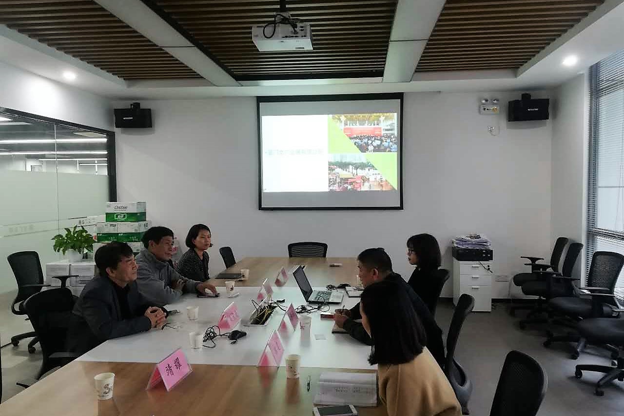 文广会展有限公司总经理李波同总经理助理郑奕热情接待我院老师。厦门文广会展有限公司为市属国有企业,主要经营会展业务、品牌活动策划组织、文创产品开发、文创空间运营等业务。其中自营展会有海峡两岸文博会,厦门国际数字娱乐博览会,还成功策划的文创活动有郑成功文化节、龙舟文化节、帆船文化节、国际时尚周、两岸特色庙会等运作了万分一文创平台,同时在会展业务、文化产业运营、活动策划、文化创意方面有着丰富的实务经验。