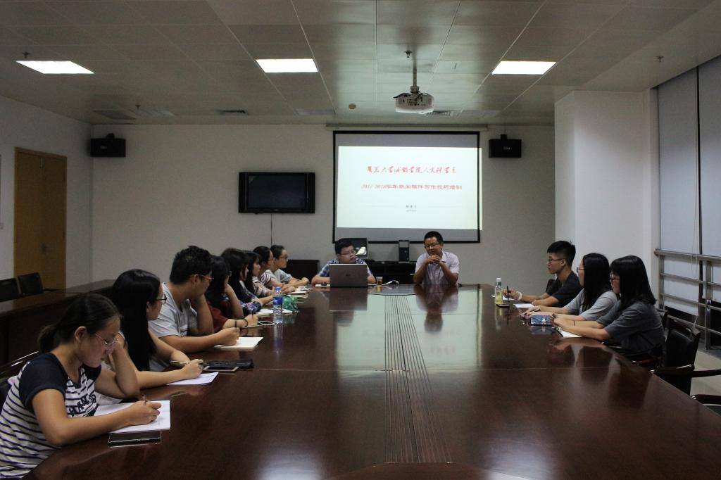 10月16日晚,人文科学系新学年学生干部新闻稿件写作技巧培训在景祺楼15楼会议室举行,本次活动由人文科学系办公室组织,人文科学系记者团承办。本次培训由人文科学系办公室主任靖耀老师主持,人文科学系各学生组织负责新闻宣传的主要学生干部参与培训。