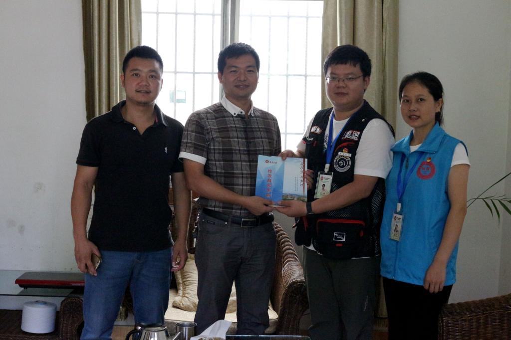调研期间,我队集美大学校友联络员、实践队队长邹景宇同实践队带队老师一起先后拜访了集美大学财经学院2003届校友、新桥乡乡长严荣焱和集美大学生物工程学院2008届校友、新桥乡纪委副书记杨玖钦两位扎根基层,为百姓服务的优秀校友,向两位校友送去母校的问候,就母校情结、基层工作等进行了交流,并代表集美大学校友会向两位校友赠送了纪念文集和校友联络手册。。