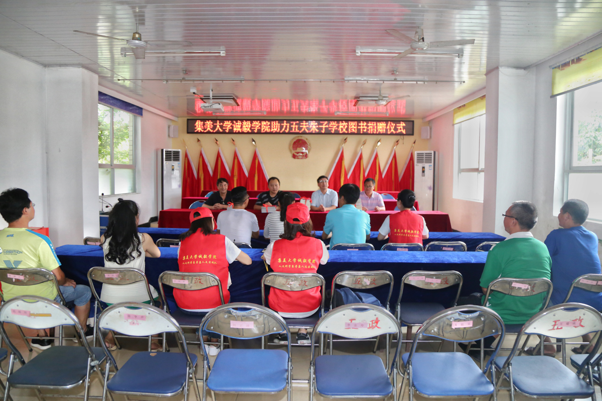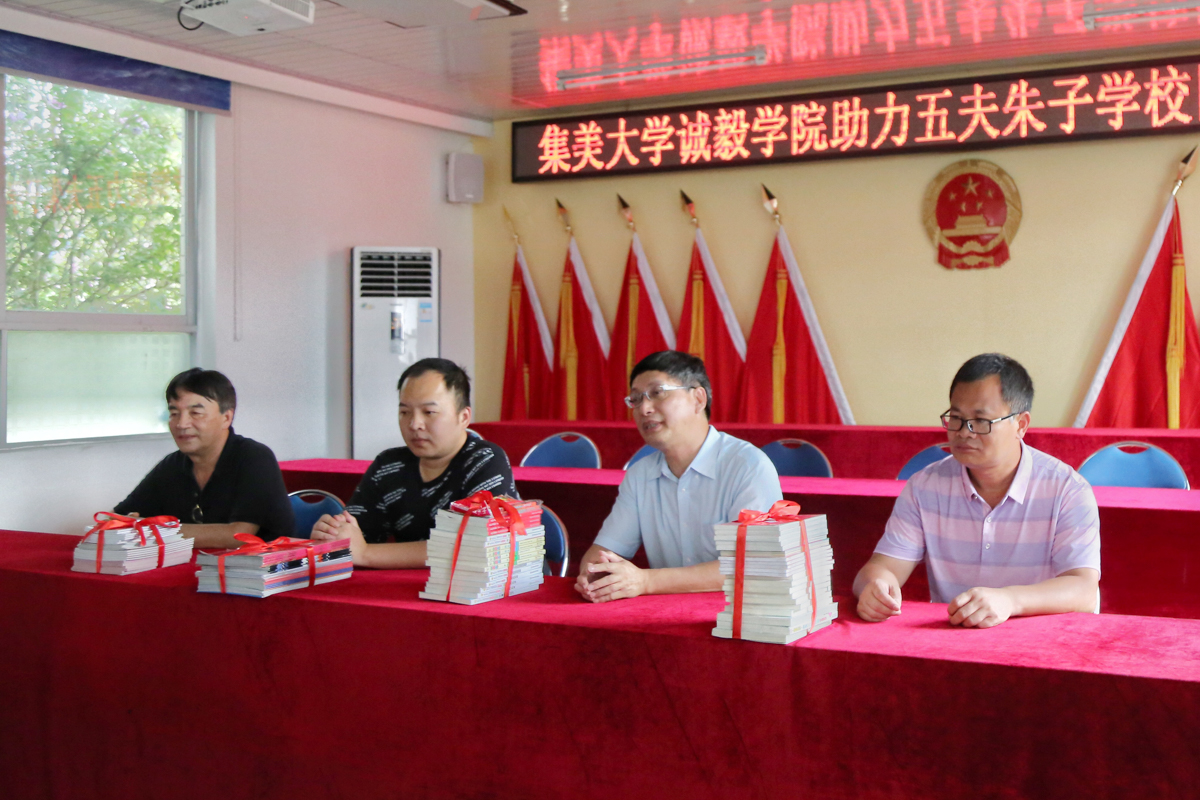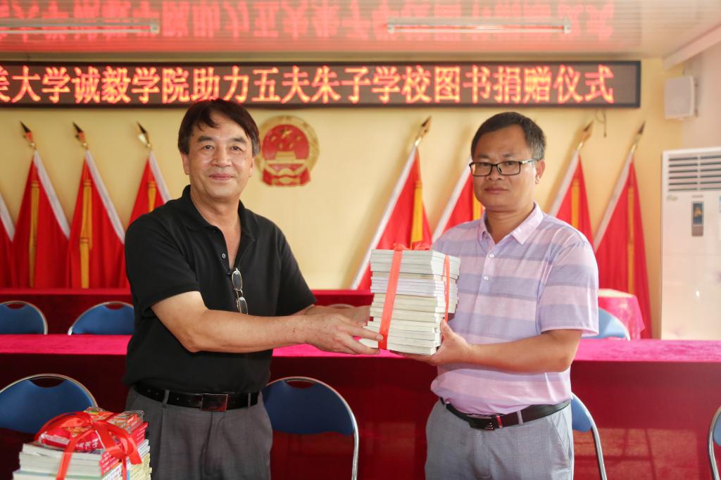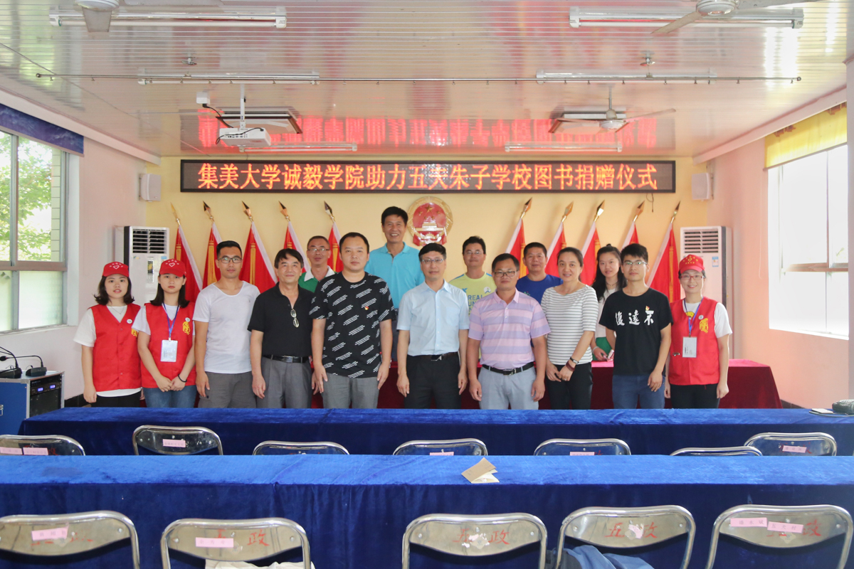 下午三时许,学院代表们满载书籍来到五夫镇政府,在此举行庄重的捐赠仪式。五夫镇党委副书记金诚凯、团委书记蒋凯祥、朱子学校李校长等相关负责人共同出席了本次活动。仪式上,当地政府对我系实践队此次社会实践活动及图书捐赠表示感谢。接着,连书记勉励队员们在实践中了解国情、社情、民情,积极开展志愿服务,助力五夫镇文化扶贫。此次实践,得到了镇政府及学院各级领导的高度重视,接着,副院长朱宝荣代表学院领导亲手将捐赠图书递予朱子学校李校长,场上顿时响彻掌声,在场的各位领导脸上都洋溢着笑容,体现了我院与五夫镇政府的友好合作关系,同时也表达了对“寻熹人文”实践队的殷切期望。