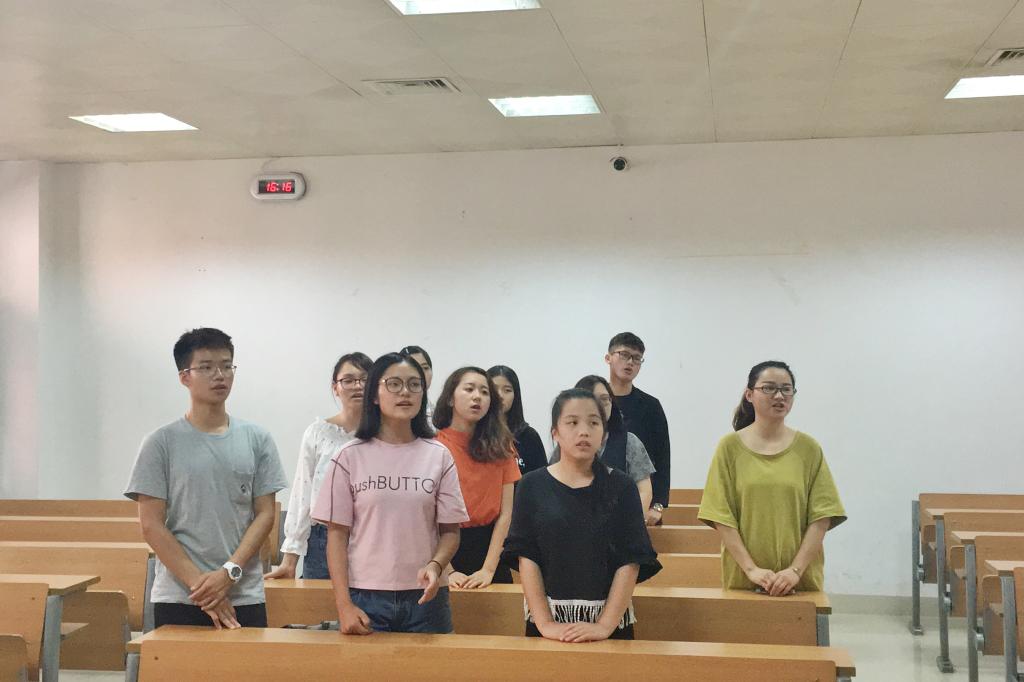 培训过程中,钟子宜学姐用极富亲和力的嗓音以及惟妙惟肖的动作,带领实践队成员们进行景区讲解的模拟训练,此次模拟讲解训练主要以五夫镇的紫阳楼和兴贤书院为重点进行模拟讲解,在模拟讲解过程中,成员们按顺序上台演练,钟子宜学姐对大家在模拟讲解中出现的问题提出可行性建议,她强调:“讲解的语言一定要口语化,在讲解的过程中要和游客有所互动,有所交流。才能让讲解更为生动更加吸引游客。”大家纷纷点头以表赞同,相信通过指导与改正练习,实践队员的讲解能力会更上一层楼。培训的第二项内容是针对《朱子歌谣》的学习,在歌声中温习朱子文化,最后全体起立进行大合唱,声音嘹亮,气势恢宏,人文情怀在每位队员心中萦绕,朱子文化在每位队员心中凝固。