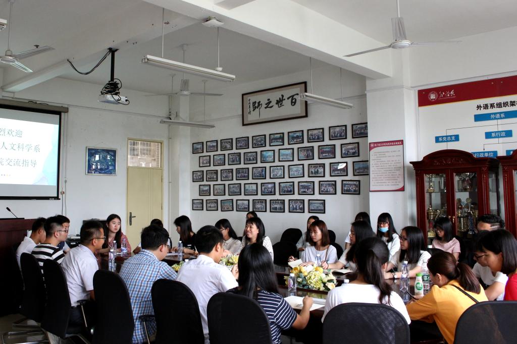本次交流活动由厦门理工学院外国语学院团委书记胡老师主持,胡老师首先向同学们展示了外国语学院相关组织、社团的特色活动及运作模式并对我系参加交流的全体学生干部表示欢迎。靖耀老师向对方介绍了人文科学系概况和主要学生组织的基本情况,并代表我系对厦门理工学院外国语学院团委表示了感谢。在交流中,两个学院的学生干部进行交叉发言,主要就新闻宣传、活动开展、组织部门职能优化等方面结合自身特色发表看法,大家相互学习,取长补短。