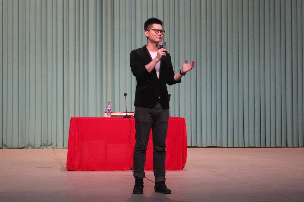 我系英语专业06级的优秀校友张铭泉通过总结他的大学四年学习生活,向同学们传达了“相信未来,定义你的梦想”正能量的演讲。张铭泉首先告诉同学们“无折腾不大一”,他鼓励同学们要多参加活动,找到自己的兴趣,并对自己所做的事情有所思考。接着他向同学们分享了他大二暑假在厦门电视台实习的经历,他总结说这归结于他对英语专业的专注力和自己敢于去尝试的勇气,因此他强调不可忽视专业课的学习,因为“无专注不大二”。随后他讲述了自己在大三时的招聘经验和学习经历,向大家传达了“无实践枉大三”,张铭泉说:“很多东西不是不可能而是你没有勇气去尝试。”