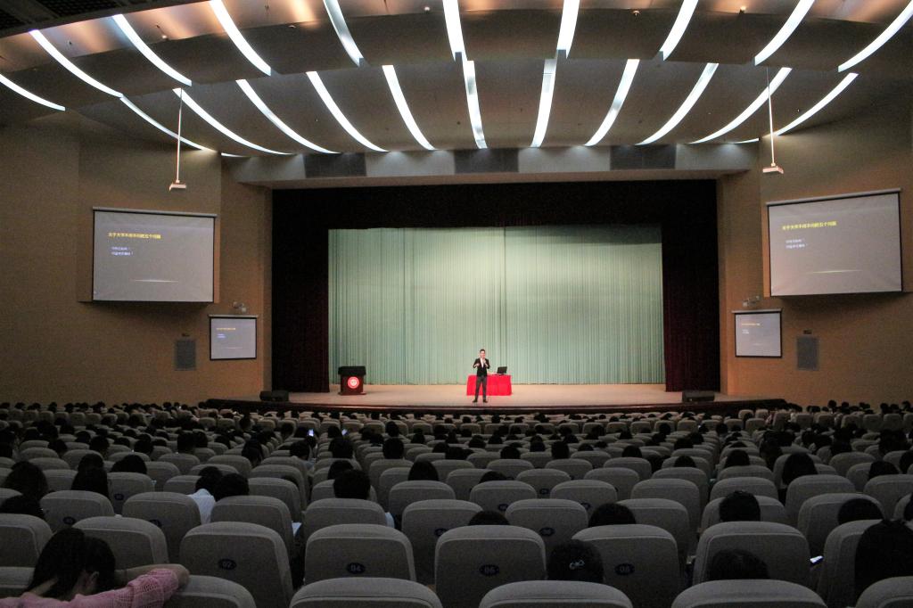 张铭泉是人文科学系2006级英语专业毕业的优秀校友,现为新东方厦门学校国外考试部副总监。本次演讲他通过总结他的大学四年学习生活,向同学们传达了“相信未来,定义你的梦想”正能量的演讲,他精彩幽默的演讲风格赢得了同学们的阵阵掌声。
