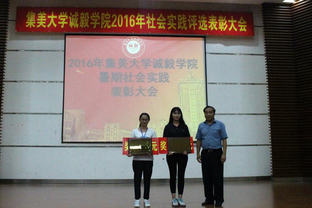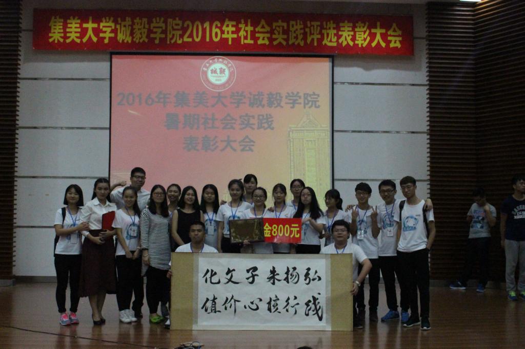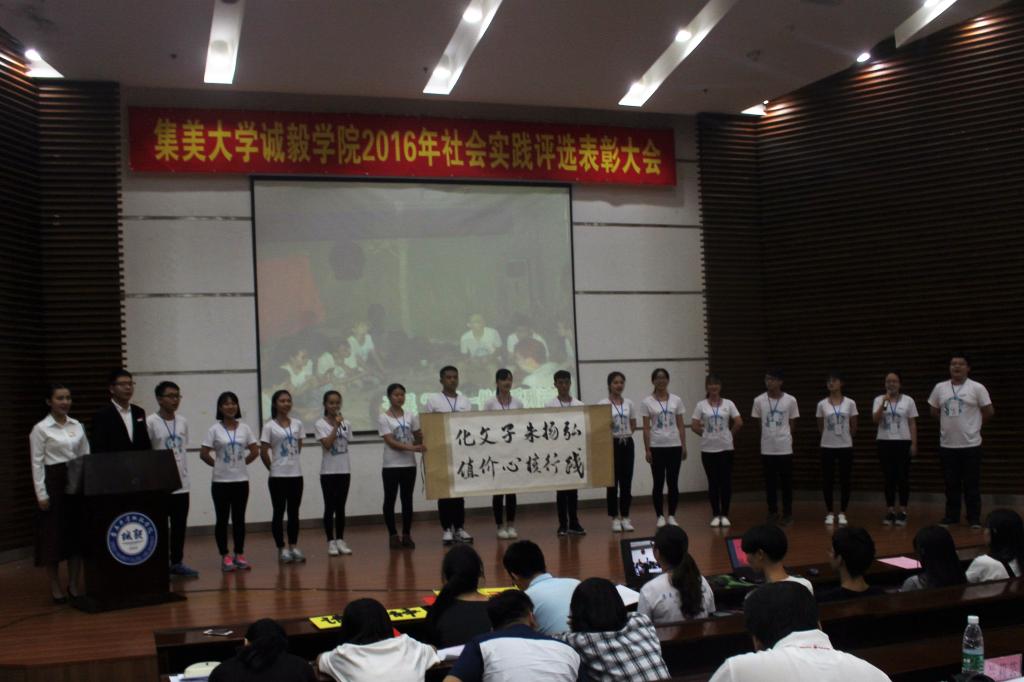 10月16日晚,2016年暑期社会实践评选表彰大会在景祺楼104学术报告厅召开。集美大学校友会会长、诚毅学院副董事长、集美大学原校长、诚毅学院创院院长辜建德教授,常务副院长郑力强,副院长黄义新,党委副书记连志崧出席了本次大会;本次大会由集美大学党委宣传部部长林斯丰、集美大学团委副书记兰莉芸、集美大学学生处副处长吴薇、集美大学思政教学部副主任肖仕平、诚毅学院教务部主任黎世学担任评委;学院相关部门负责人、各教学院系党总支书记、团总支书记,带队老师,各实践队队员,学生干部共同参加大会。