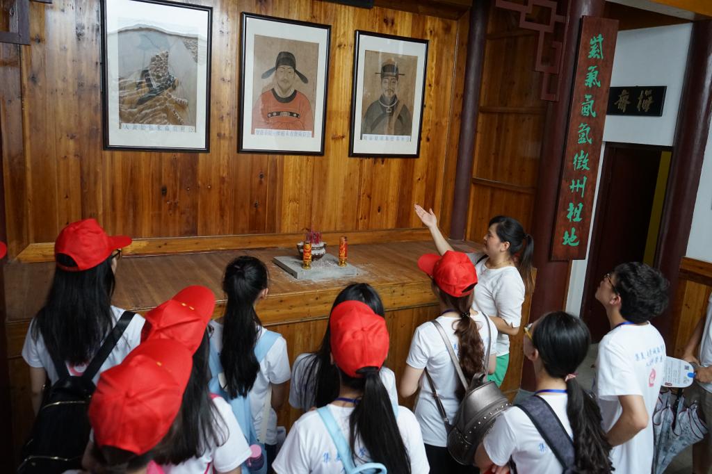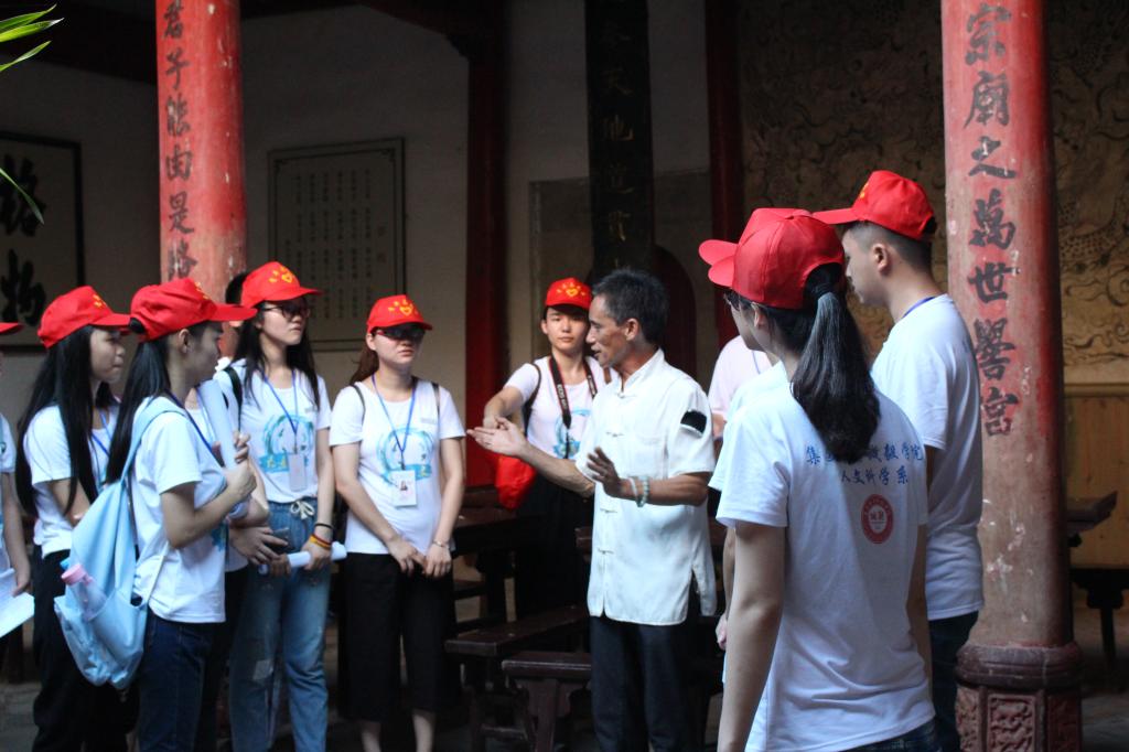 在前期准备中,老师已与五夫镇当地政府相关人员做好了对接工作。下午在五夫镇团委书记蒋老师的组织下,全队人员于五夫镇政府会议厅聆听了当地朱子文化研究人员余老师对五夫镇朱子文化的介绍概况。余老师是当地退休的小学语文老师,因着对朱子文化的热爱,退休后便加入政府为发展当地朱子文化的工作中,是当地著名的朱子文化讲解员。在他的讲述中,我们更加全面、透彻的了解到了当地朱子文化的形成发展,方方面面。随后,在五夫镇政府团委小蒋书记的带领下,全实践队成员及两位指导老师一起走访了五夫镇的著名朱子文化景点。我们首先去到的是朱熹生活的居所,紫阳楼。在门口,我们看到了朱熹当年亲手所植的古樟,第一次如此亲近的感受到朱熹。紫阳楼的工作人员余老师听说了我们将要在这为游客进行义务导游,她非常开心的为我们做了紫阳楼整体的导员,义务导游小组的同学们都获益匪浅,也为明日导游实践活动借鉴到很多事务经验。接下来全队成员跟随蒋书记去到了兴贤古街,在此期间,蒋书记亲自为我们导游讲解了兴贤古街中的著名典故。兴贤古街全长1000多米,于2015年重新翻修石板路并于当年竣工,古街内有出名的民俗文化博物馆、五贤古井、刘氏宗祠、朱子巷、兴贤书院……它见证了朱熹的成长,理学的成熟。